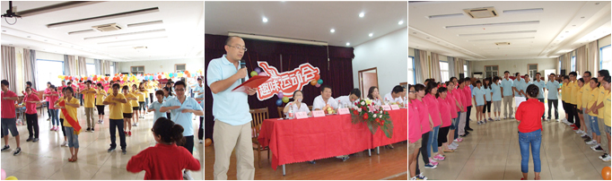 運動會由人力資源部許愛敏主持,首先她宣布了新稀寶股份2012年后勤趣味運動會正式開幕,伴隨著節(jié)奏歡快的運動員進行曲,三個方隊的運動員方陣先后入場。第一個入場的方隊是“沖鋒隊”,是由濟南網絡支持處和醫(yī)藥事業(yè)部管理支持處組成的黃色方隊,他們昂首闊步、英姿勃發(fā)地步入會場,他們此次比賽的口號是:沖鋒、沖鋒,沖向巔峰!嘹亮的口號展示了他們積極進取的豪情和頑強拼搏的信念;第二個入場的方陣是由孕嬰事業(yè)部管理支持處、產品部、研發(fā)中心和生產基地組成的“運品人生隊”,他們身穿紅色T恤,步伐堅定豪邁,臉上寫滿喜悅,他們的口號更是非同凡響:運品人生,文成武德,千秋萬載,一統(tǒng)江湖!充分展現(xiàn)了他們勇于拼搏、敢爭第一、舍我其誰的豪情與霸氣!身穿蘭色T恤、充滿青春氣息的方隊,是由人力資源部、支持中心和財務部組成的“春春隊”,他們步伐整齊劃一、自信的笑容盡情地展現(xiàn)著青春的激情與活力,他們的口號是:激情澎湃,青春不敗,氣宇軒昂,青春最強,青春青春,hold住全場!響亮的口號,整齊的步伐,燦爛的笑容,充分體現(xiàn)出新稀寶人健康向上、精神昂揚的精神風貌。