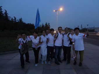 9月16日下午17:30,參加此次拉練的全體成員統(tǒng)一著裝,齊聚在生產(chǎn)基地會(huì)議室里參加了動(dòng)員大會(huì)。培訓(xùn)部經(jīng)理傅龍先生帶領(lǐng)大家進(jìn)行了定向,就拉練人員分組、行程規(guī)則、注意事項(xiàng)等進(jìn)行了詳盡細(xì)致的介紹。全體人員按照動(dòng)員要求分為三個(gè)小組,隨后,各小組人員用了約10分鐘的時(shí)間選隊(duì)長、起隊(duì)名、隊(duì)呼,畫隊(duì)旗。18:10,全體人員統(tǒng)一乘坐大巴車到達(dá)徒步的起點(diǎn)——山東財(cái)經(jīng)大學(xué)。18:30分,三個(gè)小組同時(shí)邁出了這次征程的第一步,拉練活動(dòng)正式開始。