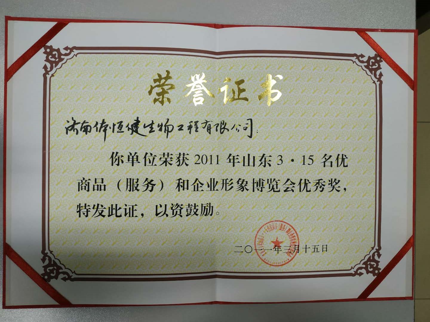 2004~2011年多次被評為“山東3-15名優(yōu)商品(服務(wù))和企業(yè)形象博覽會優(yōu)秀獎”