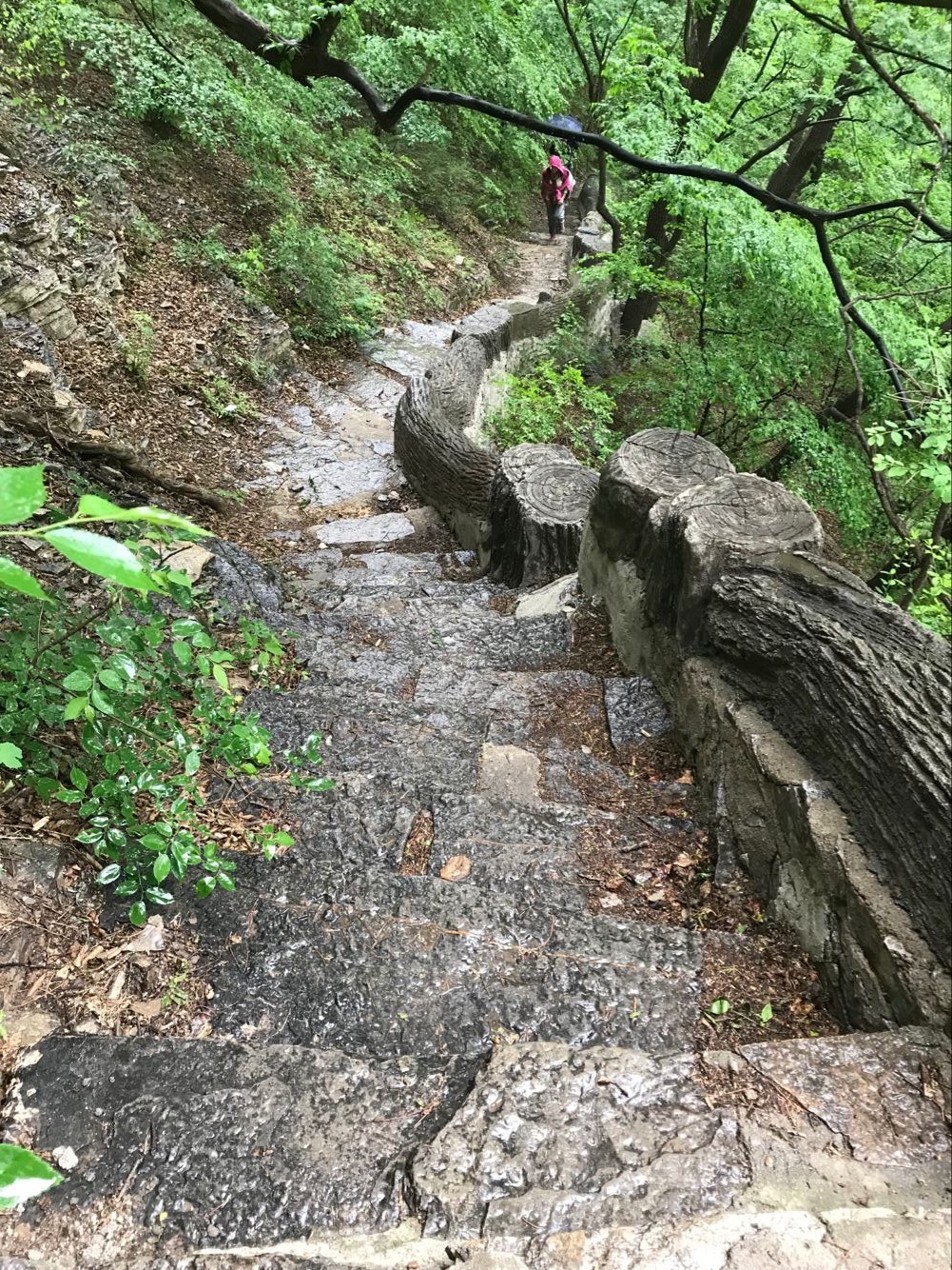 雨后的龍洞峪景區(qū)更加令人著迷,經(jīng)過(guò)雨水的沖刷,樹(shù)木更加蒼翠,風(fēng)景更加秀麗,空氣更加清新,我們禁不住大口地呼吸,感受這個(gè)天然的氧吧。漫步在蒼山綠樹(shù)叢間,身心都得到了解放,徒步十幾公里的疲憊似乎也被雨水一起沖刷而去,大家一路蹦蹦跳跳嬉笑玩鬧,開(kāi)心的像個(gè)孩子。