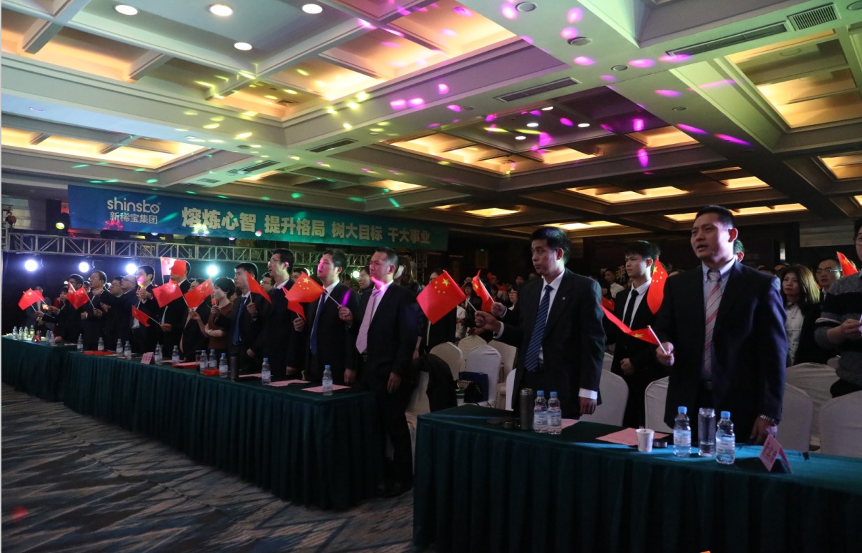 大會(huì)在莊嚴(yán)的國(guó)歌聲中正式拉開帷幕,新稀寶集團(tuán)人力資本增值部總監(jiān)兼人力行政部經(jīng)理于鳳仙女士主持大會(huì),在主持人的帶領(lǐng)下全場(chǎng)共同觀看了氣勢(shì)恢宏的《贏定2020主題片頭》,全體參會(huì)代表集體誦讀企業(yè)文化,并宣讀本次年會(huì)主題口號(hào)“肩負(fù)使命、擔(dān)當(dāng)責(zé)任、砥礪奮進(jìn)、勇攀高峰;熔煉心智、提升格局、樹大目標(biāo)、干大事業(yè)”,慷慨激昂的誦讀聲響徹整個(gè)會(huì)場(chǎng),激勵(lì)著在場(chǎng)的每一位將士。
