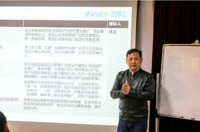 本次分享會共有三位提案人進行提案。孕嬰營銷中心傅龍?zhí)岢?span>5個議題,分別是:建立新稀寶新健康研究院,將現(xiàn)有產(chǎn)品進行整合推廣,統(tǒng)一營銷思路;建立集團層級主播團隊,分類打造主播紅人;開設內(nèi)部營銷產(chǎn)品說明會,在中高層及基層以上管理人員會議中增加公司內(nèi)部產(chǎn)品推廣,讓大家了解產(chǎn)品的同時為全員營銷做鋪墊;進行市場采風,收集整理優(yōu)秀一線的市場營銷動作及客戶、門店、消費者反饋,在集團現(xiàn)有渠道進行宣傳推廣;打通各品牌在各自行業(yè)內(nèi)的發(fā)聲平臺,樹立行業(yè)內(nèi)品牌的高度,便于招商合作。