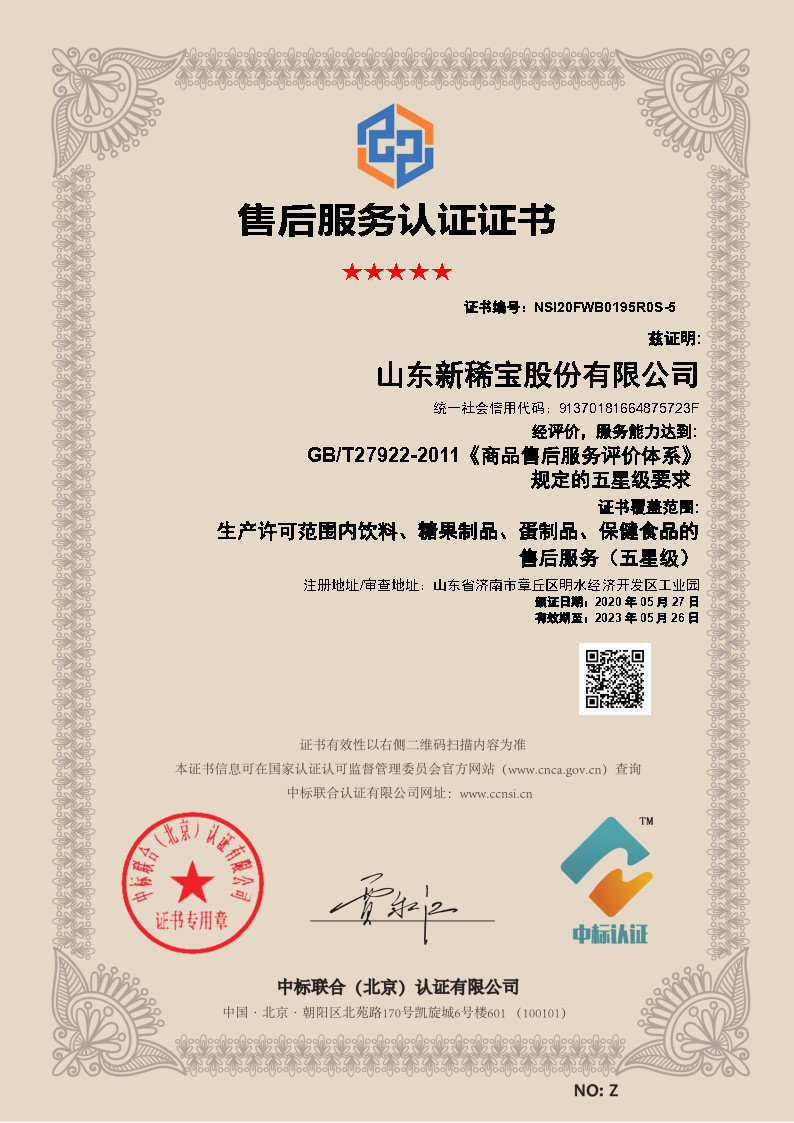 售后服務(wù)認(rèn)證證書(shū)