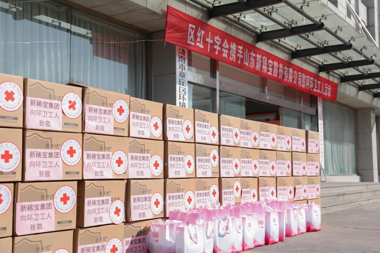 2020年11月3日,新稀寶集團(tuán)攜手章丘區(qū)紅十字會(huì)為章丘區(qū)環(huán)衛(wèi)工人送去溫暖問(wèn)候。捐贈(zèng)善卡優(yōu)乳清乳鐵蛋白固體飲料共1200罐,總價(jià)值432000元。