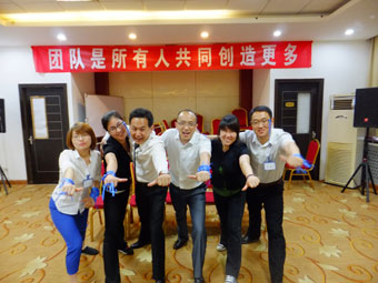 隨后,在大家熱切的期盼中迎來了第一個團(tuán)隊游戲。這是一個看似非常簡單的游戲,開始之前每一位隊員都充滿了必勝的信念,大家相約要以最短的時間完成任務(wù)。在游戲進(jìn)行中,大家才突然意識到,看似小小的道具并不像他們想象得那么容易駕馭,本意是向下,它卻偏偏朝上,一個預(yù)計在20-30秒就可以完成的游戲,每隊卻花費了近20分鐘的時間,大大出乎意料之外。這時候大家才明白:“放下”原來是這么難。其實很多時候我們心里想的是我們要拿起什么,卻很少思考我們需要放下什么?放下榮耀、放下經(jīng)驗、放下負(fù)擔(dān)、放下一切阻止我們前進(jìn)的障礙,只有先放下才會有機(jī)會拾起。