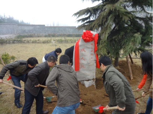 在接下來的植樹和二十周年成人禮樹碑活動(dòng)中,大家的心情都萬分激動(dòng),熱情高漲,拿起鐵鍬迅速動(dòng)起手來,動(dòng)作熟練、有條不紊,干的熱火朝天。經(jīng)過大家的共同的努力,中午時(shí)分,終于順利完成了常青樹種植和樹碑活動(dòng)。公司董事長湯傳忠先生發(fā)表了簡短的致辭,以樹喻人,對公司今后的發(fā)展充滿了信心,對管理人員寄予了更高期望。